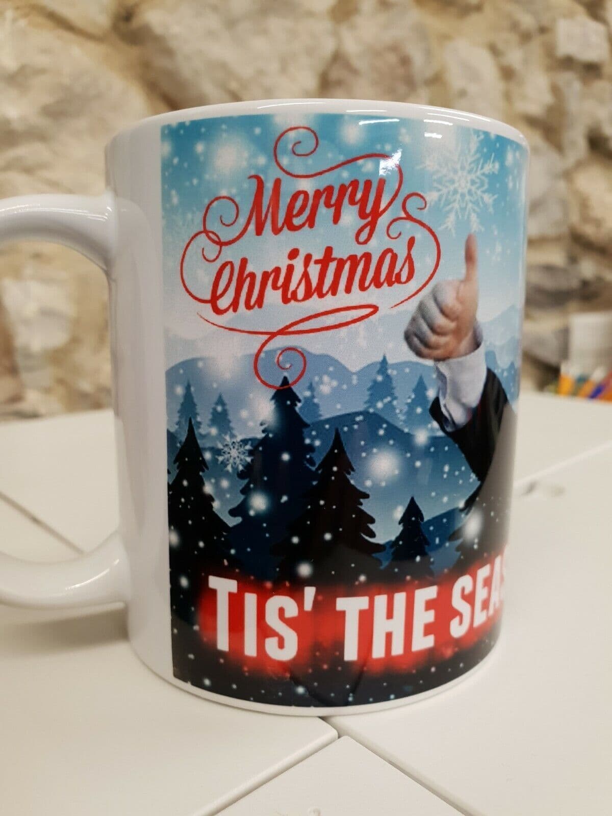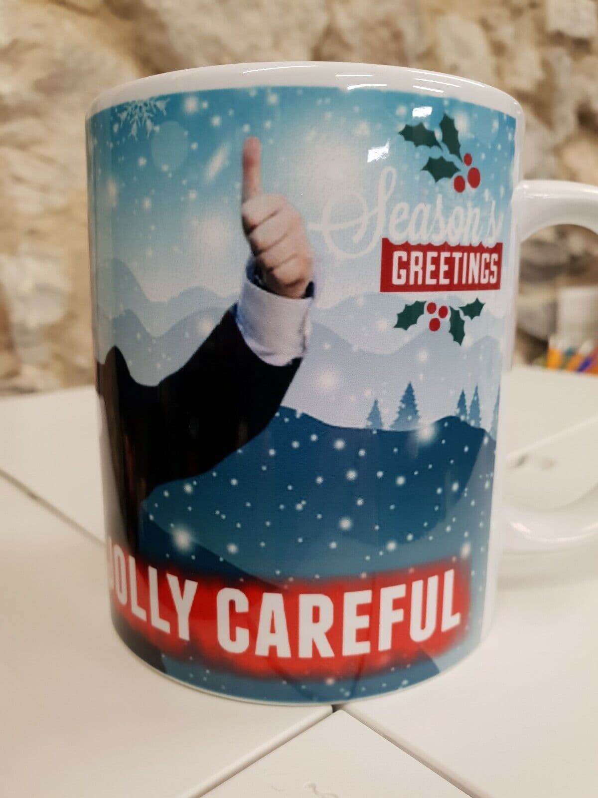 Home / Politics View more images Product Description Coffee Cup 11oz Mug(325ml) Standard SizedMug Information:Size - Standard 11oz (325ml)MugMicrowave safeDishwasher safeFull colour printwrapped around the mug.Despatched in strongpackaging for safe posting.The perfect, personalgift!Usually DespatchedSame Day on orders received before 1pm, via Royal Mail Tracked 48All cups are our own exclusive,original and unique designs, produced in the UK. Specifications Brand Johnson & Johnson Condition New Delivery We use Royal Mail tracked for our deliveries and aim to despatch same day Mon-Fri on orders received before 2pm. Boris Johnson Tis the season to be jolly careful Christmas Cup Mug Ho ho Bojo £7.99