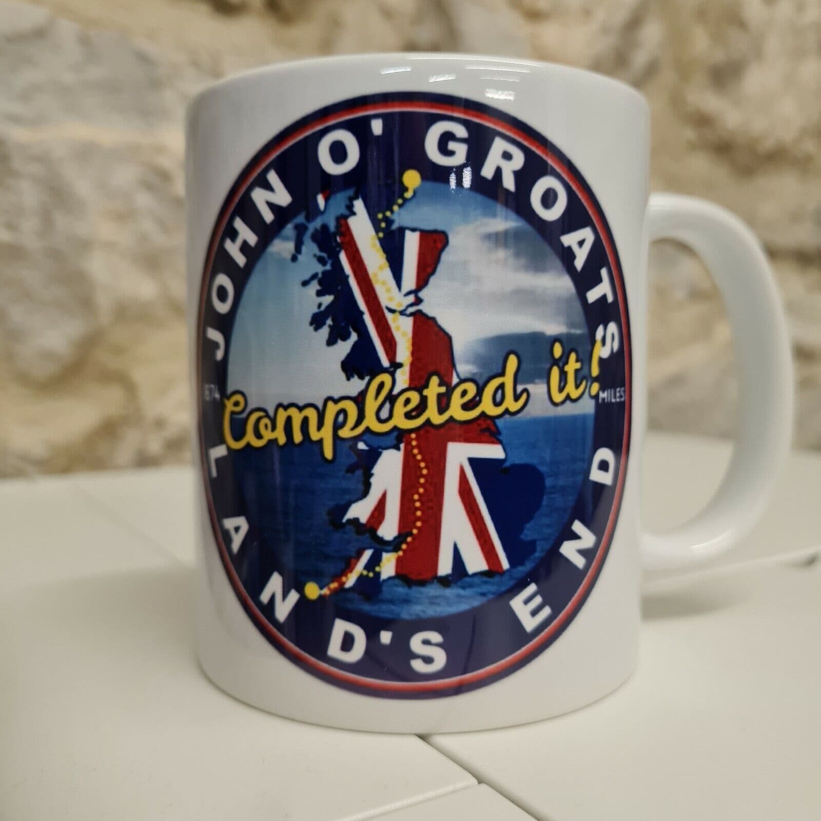 Home / Achievements Product Description Coffee Cup 11oz Mug (325ml) Standard Sized Mug Information: Size - Standard 11oz (325ml) Mug Microwave safe Dishwasher safe Full colour print wrapped around the mug. Despatched in strong packaging for safe posting. The perfect, personal gift! Usually Despatched Same Day on orders received before 1pm, via Royal Mail Tracked 48 All cups are our own exclusive, original and unique designs, produced in the UK. Specifications Brand National Condition New Delivery We use Royal Mail tracked for our deliveries and aim to despatch same day Mon-Fri on orders received before 2pm. John O Groats to Lands End Lejog Challenge mug cup "Completed it!" Gift £7.99